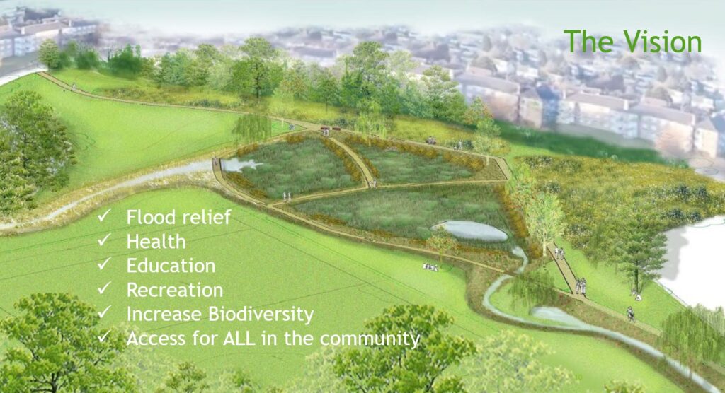 Planning began in 2014, as a partnership between Enfield Council, the Environment Agency, Thames Water, and Thames 21. The primary objective was to reduce the risk of flooding in Edmonton, which occurred in 1949, 1956, 1987 and 2000.